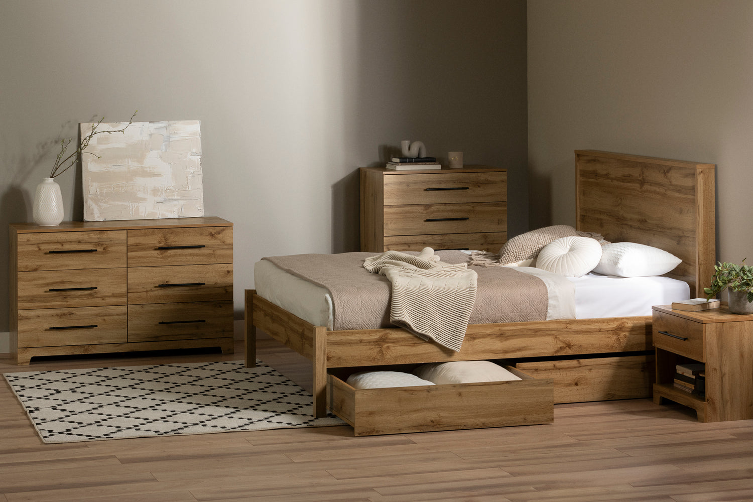 Our bedroom category includes trendy and comfortable beds and several storage furniture options. A variety of styles is available because your bedroom should reflect who you are and what you like.
